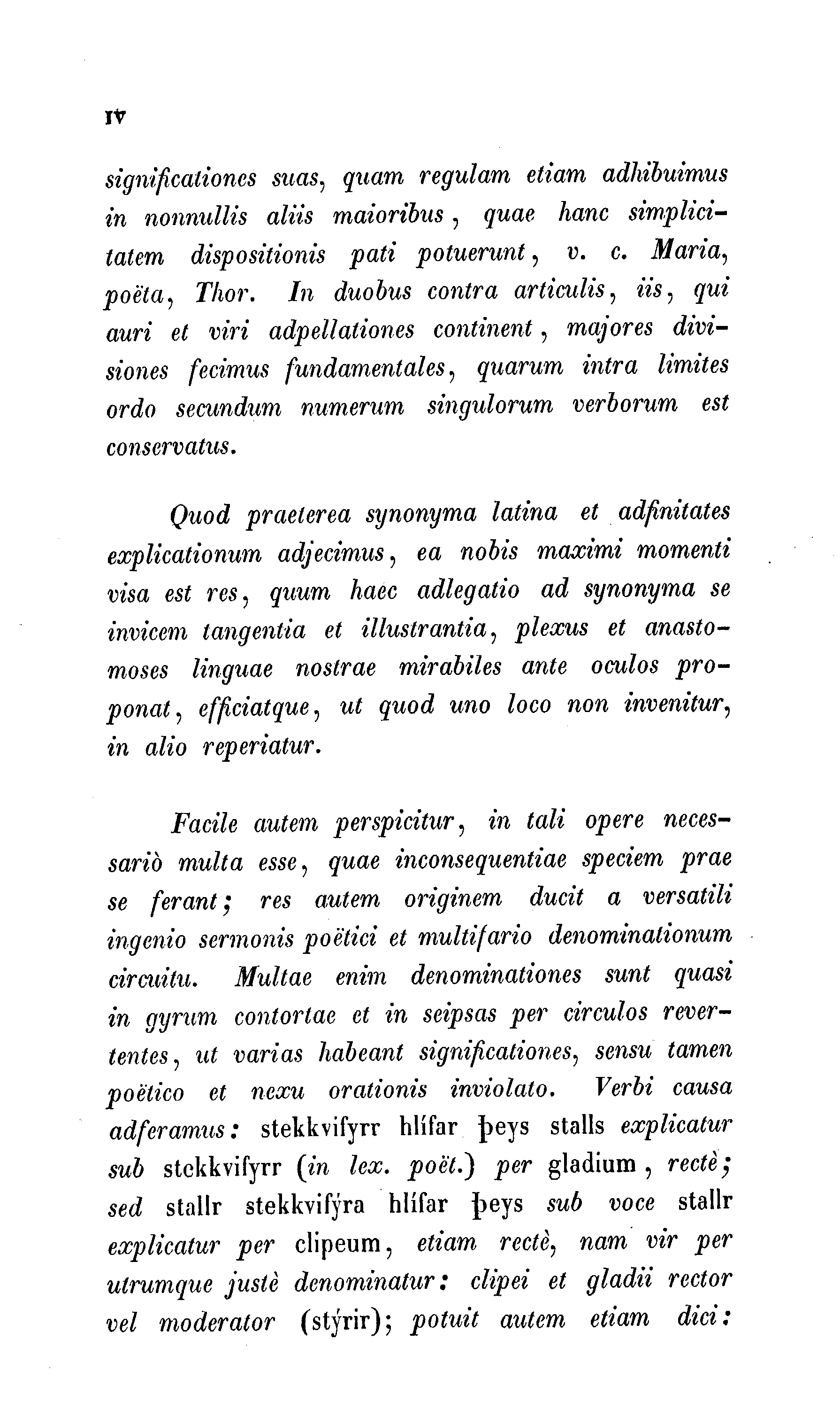 Facile autem perspicitur, in tali opere neces-sariö multa esse^ quae inconsequentiae spedem prae se ferant; res autem originem ducit a versatili ingenio sermonis poetici et multifario denominalionum cirmitu. Multae enim denominationes sunt quasi in gyrum contortae et in seipsas per circulos rever-tentes, ut varias habeant significationes^ sensu tamen poelico et nexu orationis inviolato. Verbi causa adferamus: stekkvifyrr hlÃfar þeys stalls explicatur sub stekkvifyrr (in lex. poetS) per gladium , recté; sed stallr stekkvifýra hlÃfar þeys sub voce stallr explkatur per clipeum, etiam recté, nam vir per ulrumque justé dcnominatur: clipei et gladii rector vel moderator (stýrir); potuit autem etiam dici:
