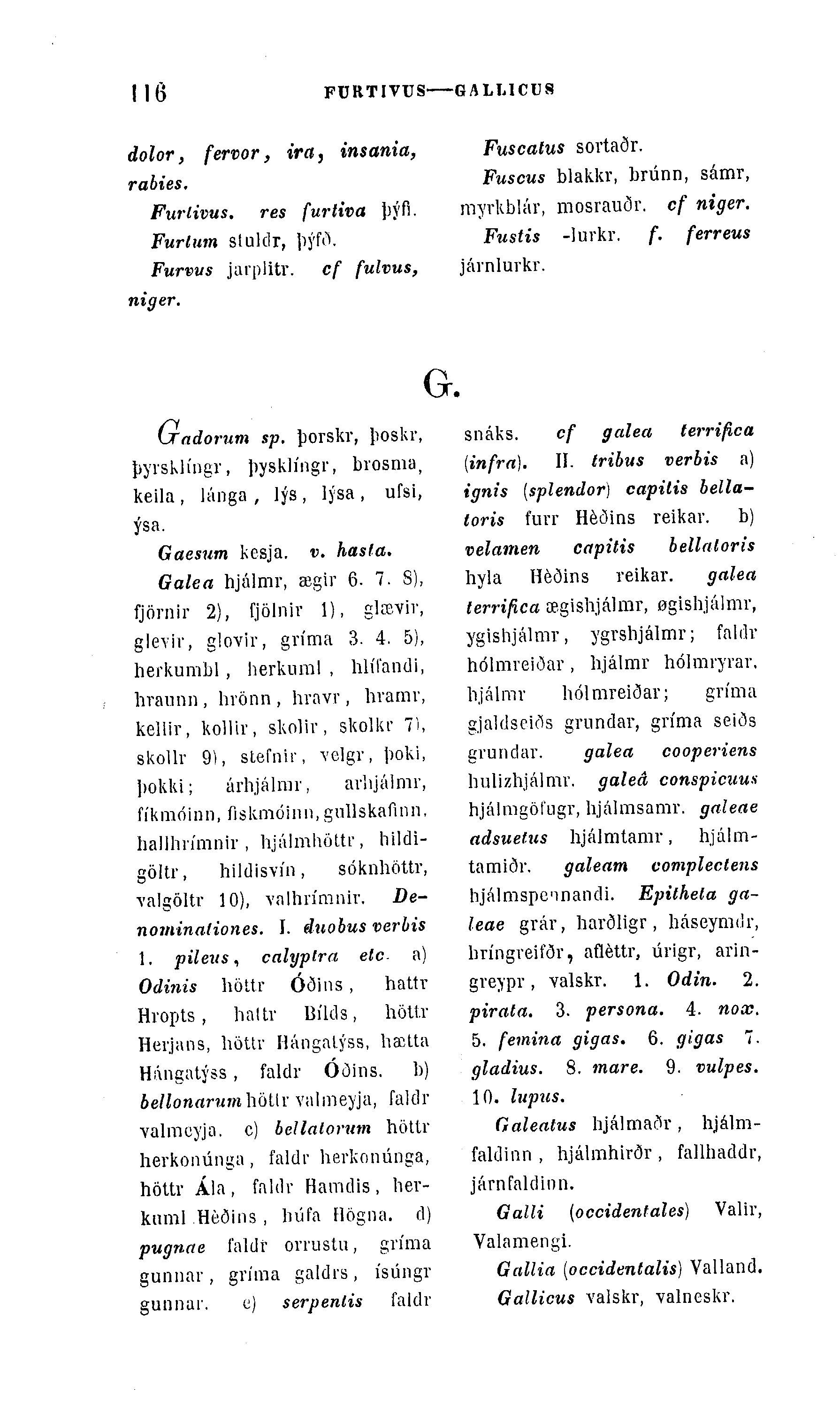 Galea hjálmr, ægir 6. 7. S), fjörnir 2), fjölnir 1), glÅ“viv, gleviv, glovir, grÃma 3. 4. 5), herkumbl, herkuml , hlÃfandi, hraunn , hvönn , hvavr, hvamv, kellir, kolliv, skolir, skolkr 7), skollr 9), stefnir, "velgr, þoki, jioklu; árbjálrar, avlijálmr, fÃkmóinn, fiskmóinn.gullskafirm, hallhrÃmnir , hjálmhöUr, hildi-göltr, hildisvÃn, sóknhöttr, valgöltr 10), valhrÃmnir. De-nominaliones. I. duohus verbis 1. pileus, calyplra etc- a) Odinis höttr Óðins , hattr Hropts, hattv BÃlds, höttv Herjans, höttv Hángalýss, hætta Hángatýss, faldr Oðins. b) bellonarum\\ól\x valmeyja, faldr valmcyja. c) bellatorum höttr herkonúnga, faldr herkonúnga, höttv Ã