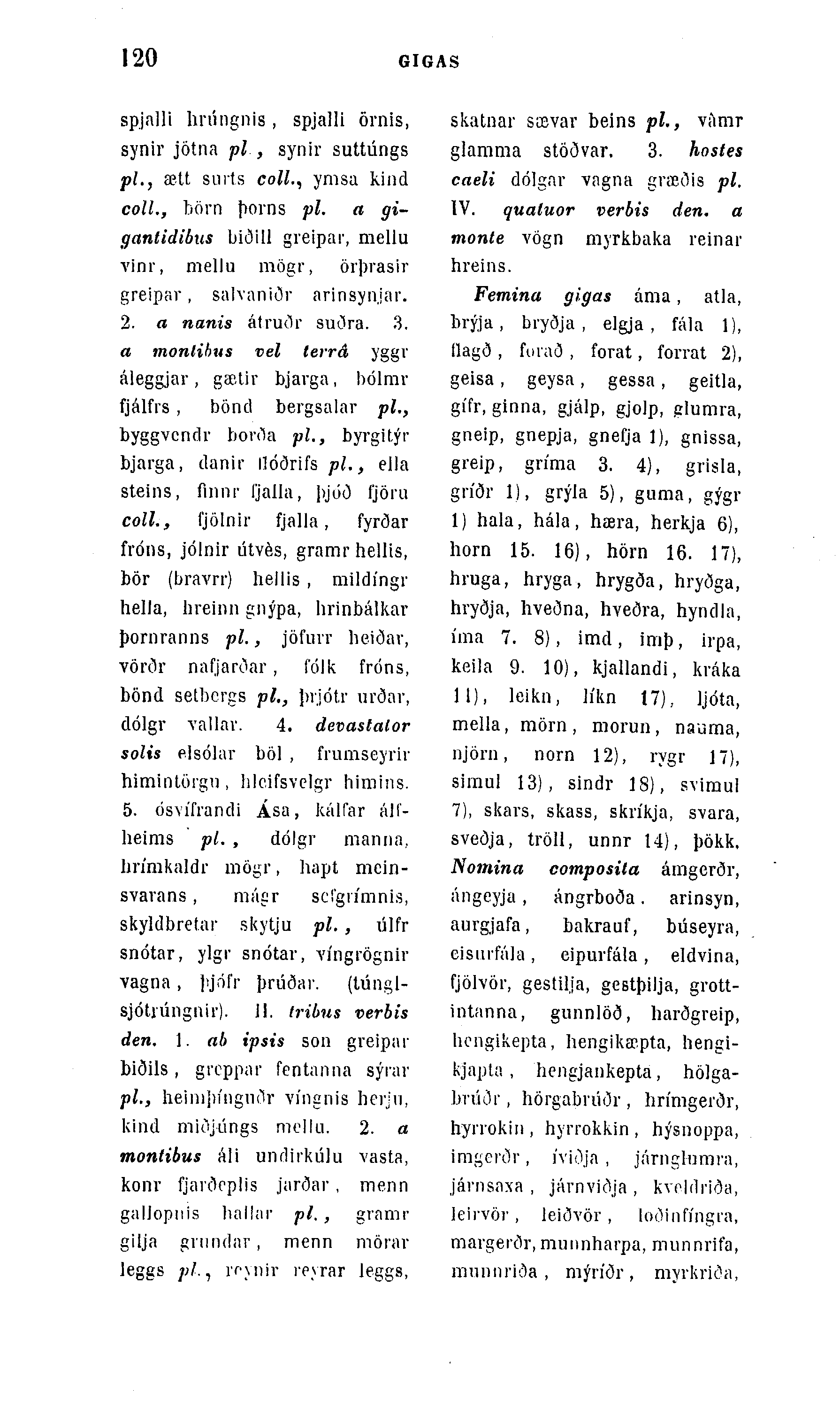 spjalli lirúngnis , spjalli örnis, synir jötna pl , synir suttúngs pl., ætt siiits coll., ymsa kind coll., börn þorns pl. a gi-gantidibus biðill greipai1, mellu vinr, mellu mögr, örþrasir greipar, salvaniðr arinsyn.jar. 2. a nanis átruðr suðra. 3. a monlibus vel lerrá yggi' áleggjar, gætir bjavga, hólmr fjálfrs , bönd bergsalar pl., byggvcnclr borfia pl., byrgitýr bjarga, danir ilóðrifs pl., ella steins, fmnr Ij'alla, ])jóð fjöru coll., fjölnir fjalla, fyrðar fróns, jólnir útvés, gramr hellis, bör (bravrr) hellis , mildÃngr hella, hreinn gnýpa, hrinbálkar þornranns pl., jöfuvr beiðav, vörðr nafjarðar, Ãolk fróns, bönd setbcrgs pl., þrjótr urðar, dólgr vallav. 4. devastalor solis elsólar böl , frumseyrir himintörgu, hlcifsvclgr himins. 5. ósvÃfrandi Ã