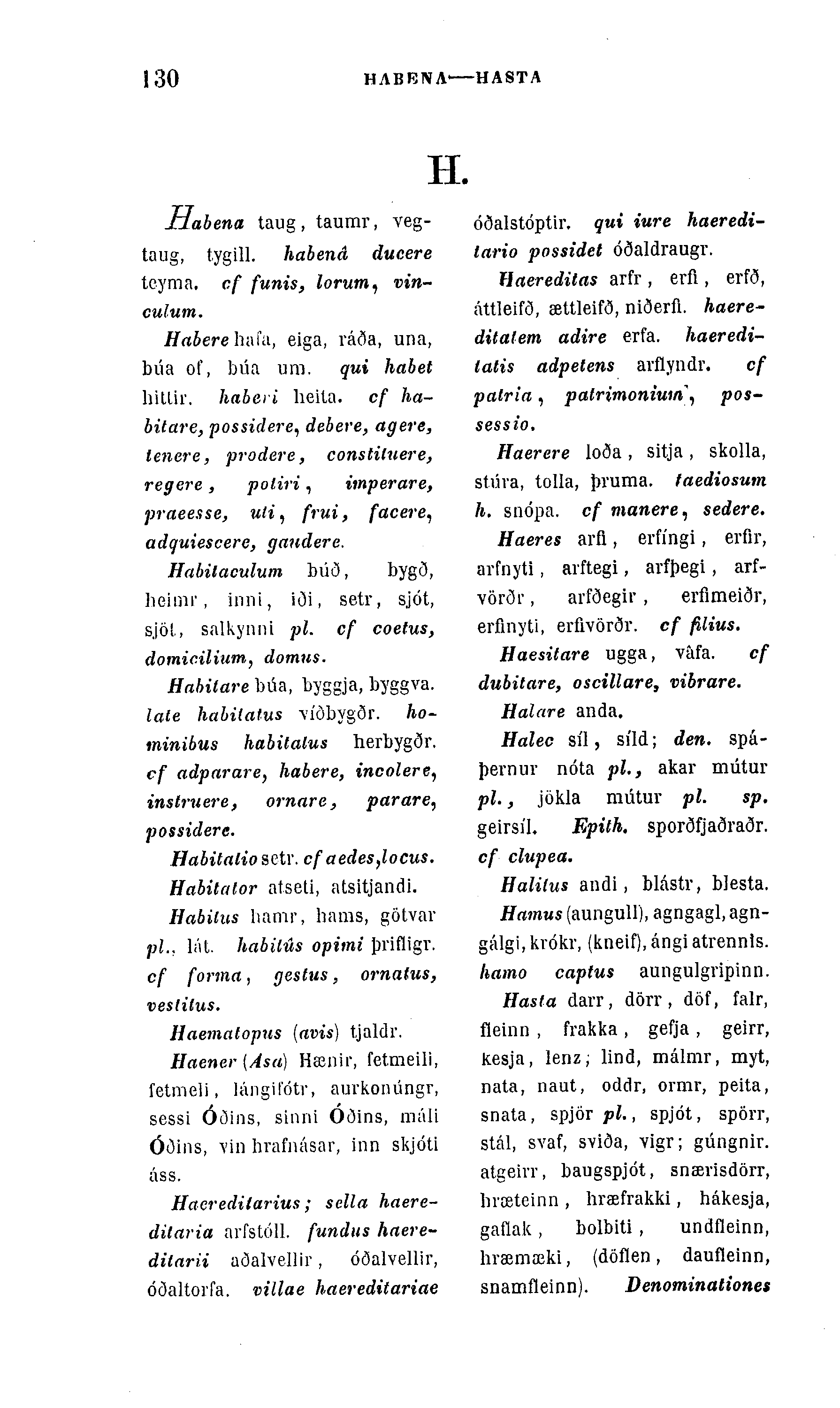 Haberehahi, eiga, ráða, una, búa ot', búa um. qui habet hitlii1. haberi heila. cf ha-bitare, possidere, debere, agere, lenere, prodere, constiluere, regere, poliri, imperare, praeesse, mÃÃ, frui, facere, adquiescere, gaudere.