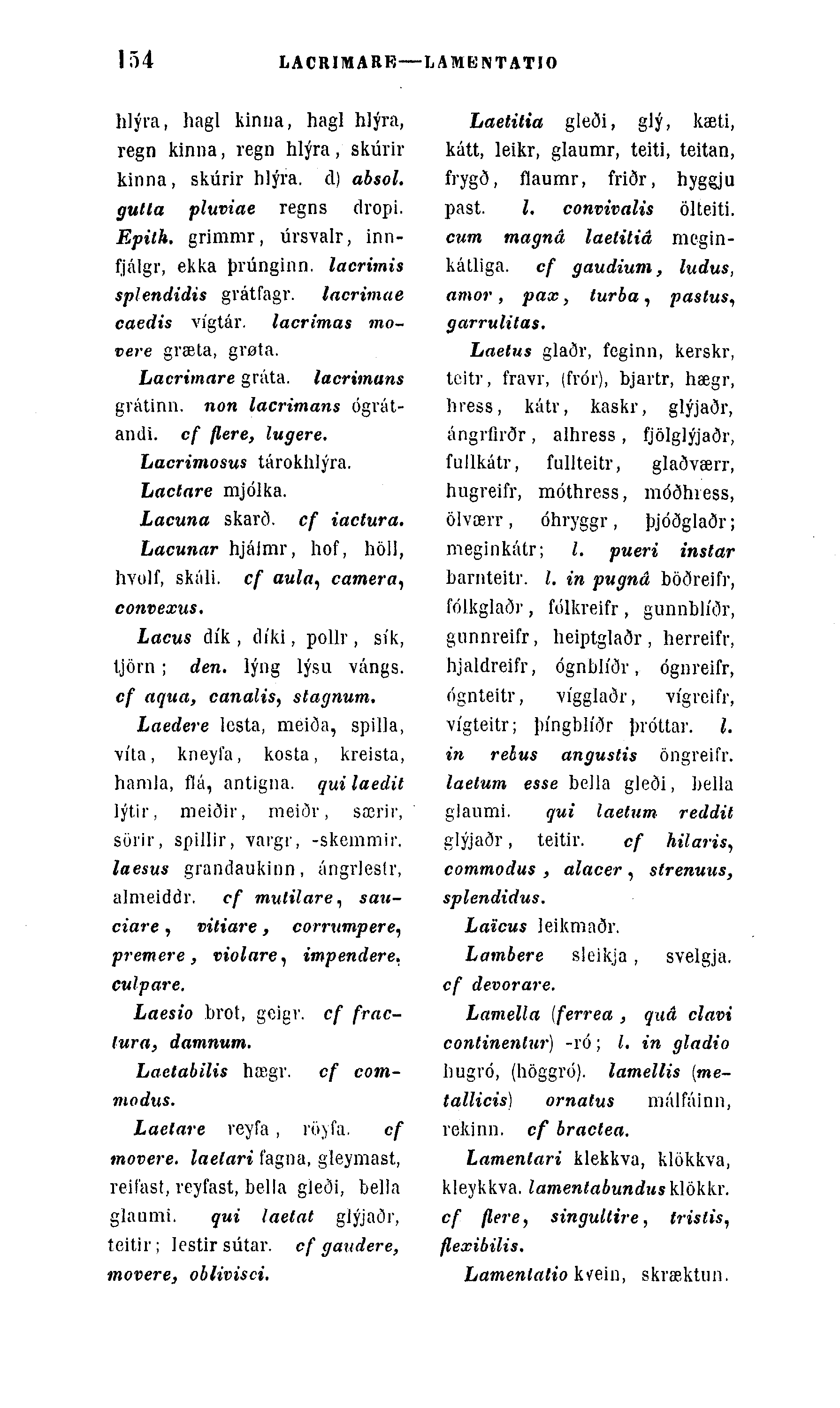 Laelare reyfa , rö>fa. cf tnovere. laelari f'agna, gleymast, reil'ast, veyfast, bella gieði, bella glaumi. qui laetat glýjaðr, teitir; lestir sútar. cf gaudere, movere, oblivisci.
