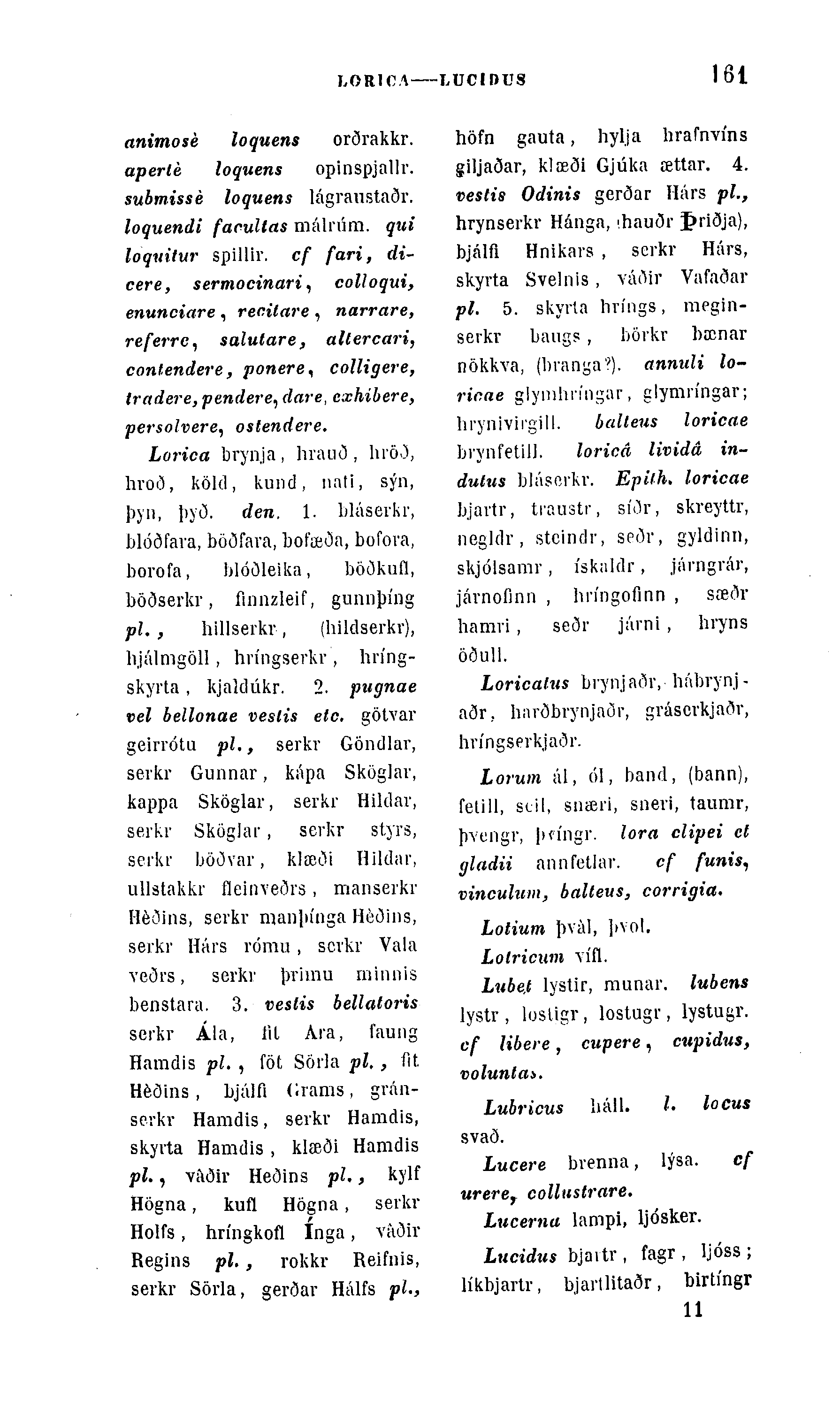 Lorica brynja, hrauð , lnöO, hvoð, köld, kund, nati, sýn, þyn, þyð. den. 1. bláserkr, blóðfara, böðfava, bofæöa, bofova, borofa, blóöleika, boðkufl, böðserkr, íinnzleif, gunnþíng pl., hillserkr, (hildserkr), lijálmgöll, hríngserkr , hríng-skyrta, kjalclúkr. 2. pugnae vel bellonae veslis etc. götvar geirrótu pl,, serkr Göndlar, serkr Gunnar, kápa Sköglav, kappa Sköglar, serkr Hildav, serkr Sköglar, serkr styrs, serkr böðvar, klæöi Hildar, ullstakkr fleinveðrs , manserkr Héðins, serkr manjn'nga Héðins, serkr Hárs rómu, scvkv Vala veðrs, serkv þrimu minnis benstara. 3. veslis bellaloris serkr Ã