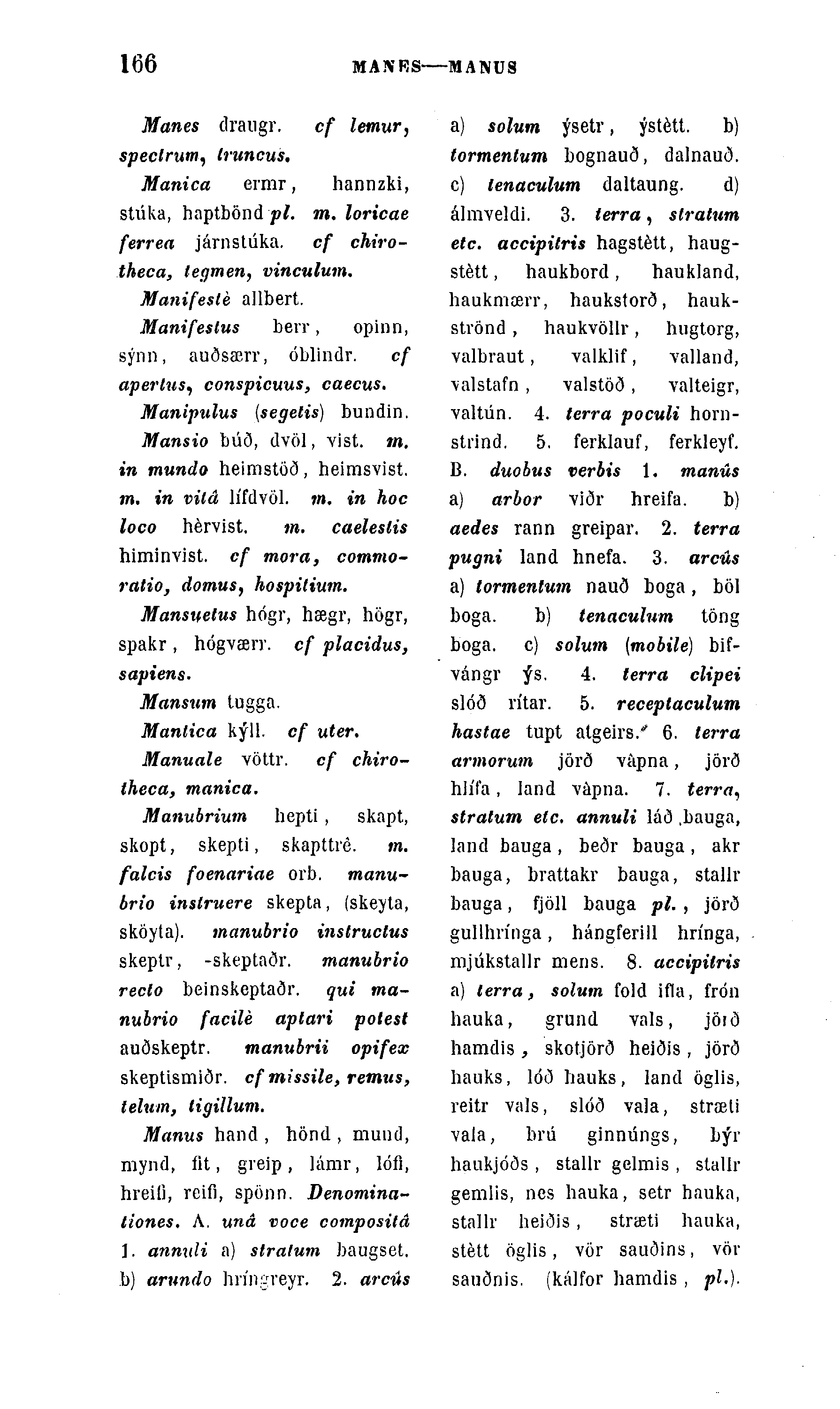 Manubrium hepti , skapt, skopt, skepti, skapttré. m. falcis foenariae orb. manv,-brio inslruere skepta, (skeyta, sköyta). manubrio instructus skeptr, -skeptaðr. manubrio reclo beinskeptaðr. qui ma-nubrio facilé aplari potest auðskeptr. manubrii opifex skeptismiðr. cf missile, remus, telum, ligillum.