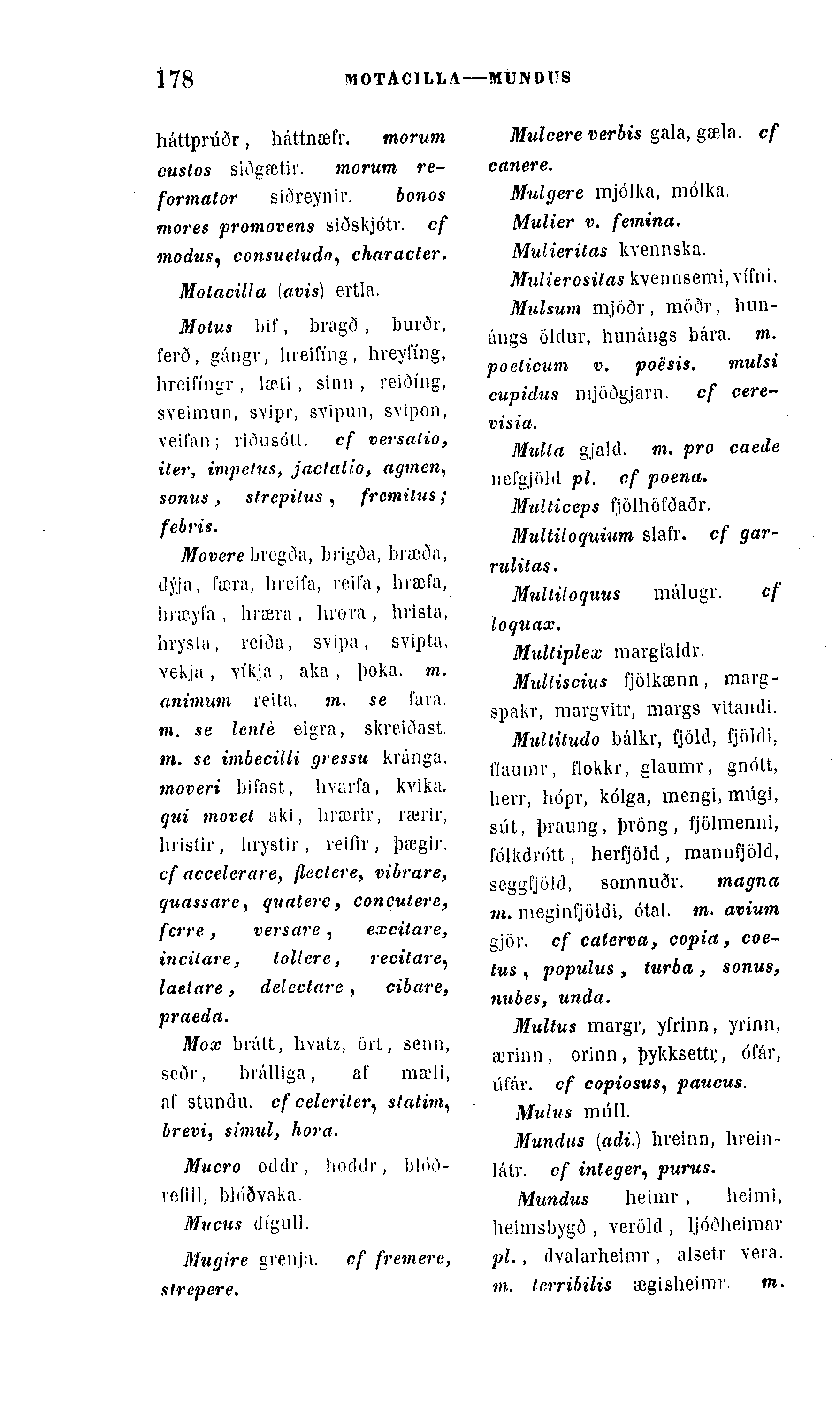 Motus bit', bragð , burðr, ferð, gángv, hreifÃng, hveyfÃng, hrcifÃngr , læli , sinn , reiðÃng, sveimun, s\ipr, svipun, svipon, â– veil'an ; viðusótt. cf versalio, iter, impetus, jactalio, agmen, sonus , strepilus , frcmilus; febris.