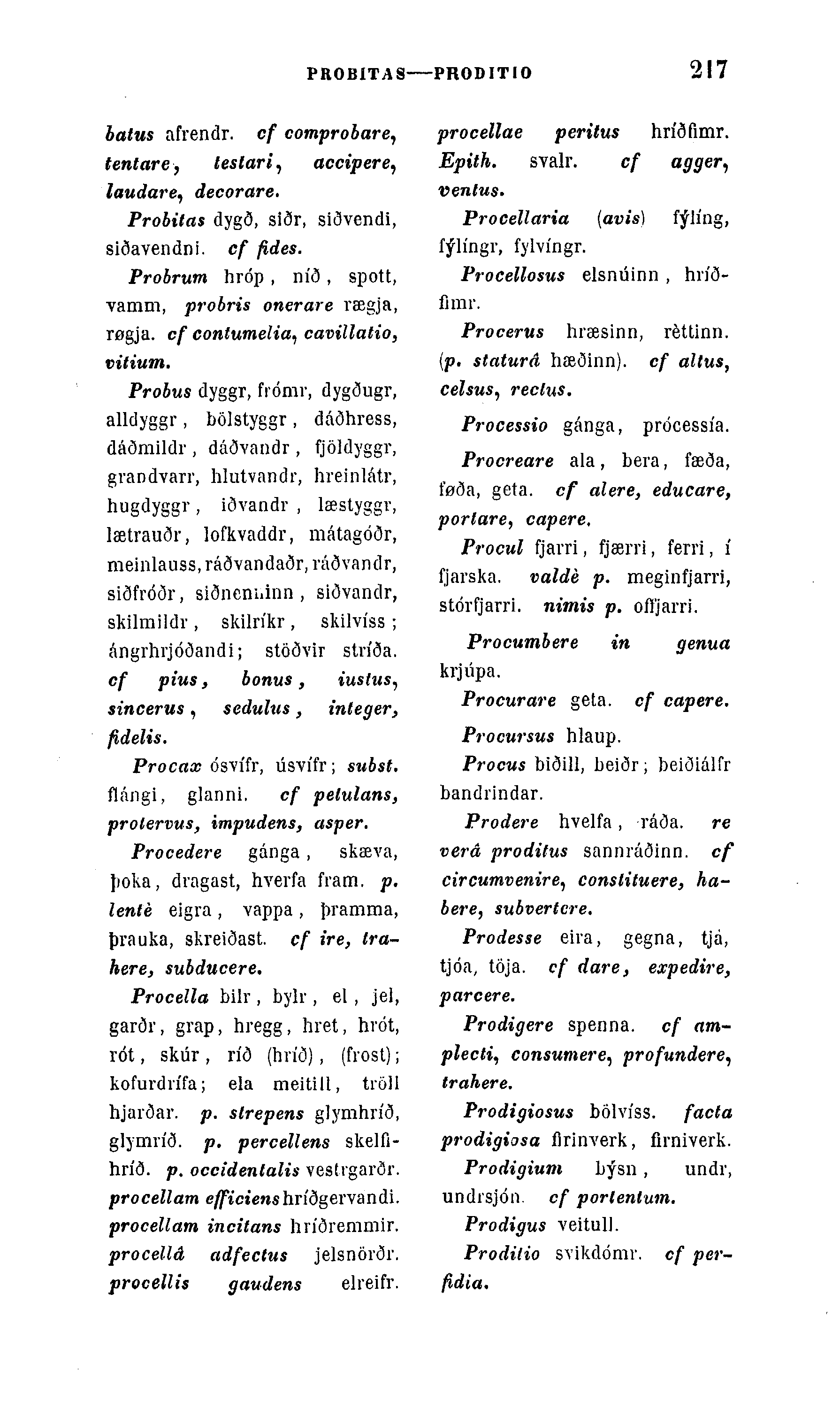 Probus dyggr, frómr, dygðugr, alldyggr , bölstyggr , dáðhress, dáðmildr , dáðvandr , fjöldyggr, grandvarr, hlutvandr, hreinlátr, hugdyggr, iðvandr , læstyggr, lætrauðr, lofkvaddr, mátagóðr, meinlauss, ráðvandaðr, ráðvandr, siðfróðr, siðncniiinn , siðvandr, skilmildr , skilríkr , skilvíss ; ángrhrjóðandi; stöðvir stríða. cf pius, bonus, iustns, sincerus, sedulus, integer, fidelis.