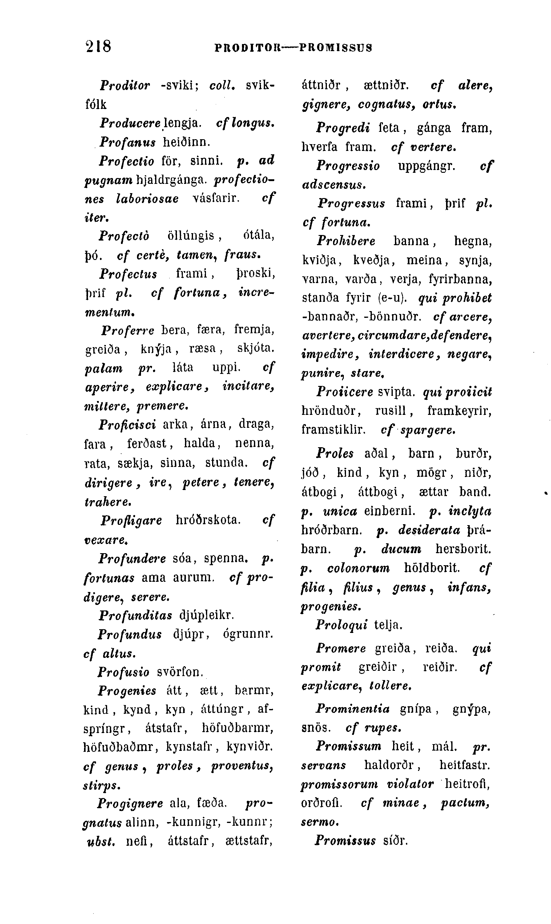 Proles aðal, barn , burðr, jóð , kind , kyn , mögr , niðr, átbogi, áttbogi, ættar band. p. unica einberni. p. inclyta hróðrbarn. p. desiderata þrá-barn. p. ducum hersborit. p. colonorum höldborit. cf filia , fílius , genus , infans, progenies.