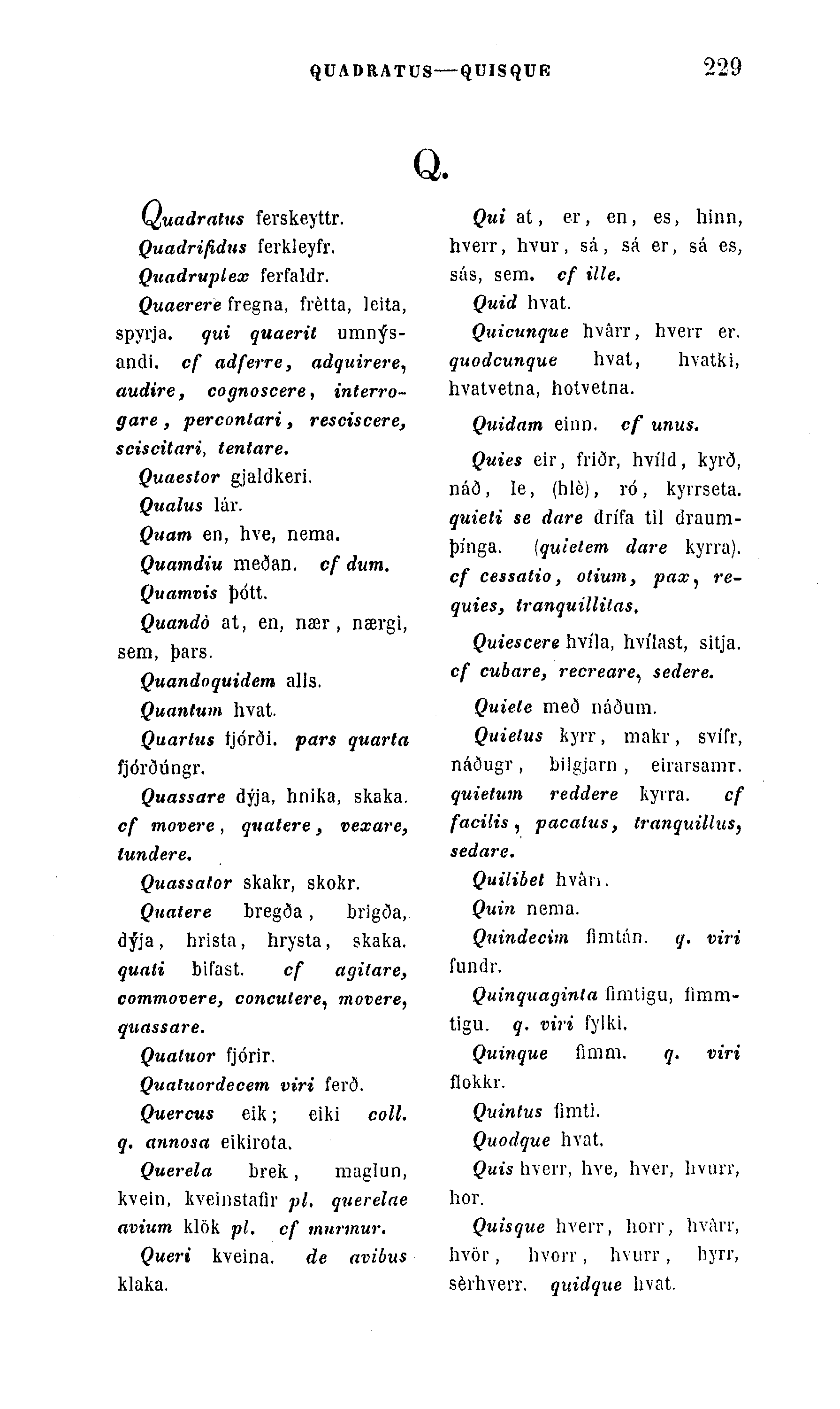 Quaerere fregna, frétta, leita, spyrja. qui quaeril umnýs-andi. cf adferre, adquirere, audire, cognoscere, interro-gare , perconlari , resciscere, sciscitari, tentare,