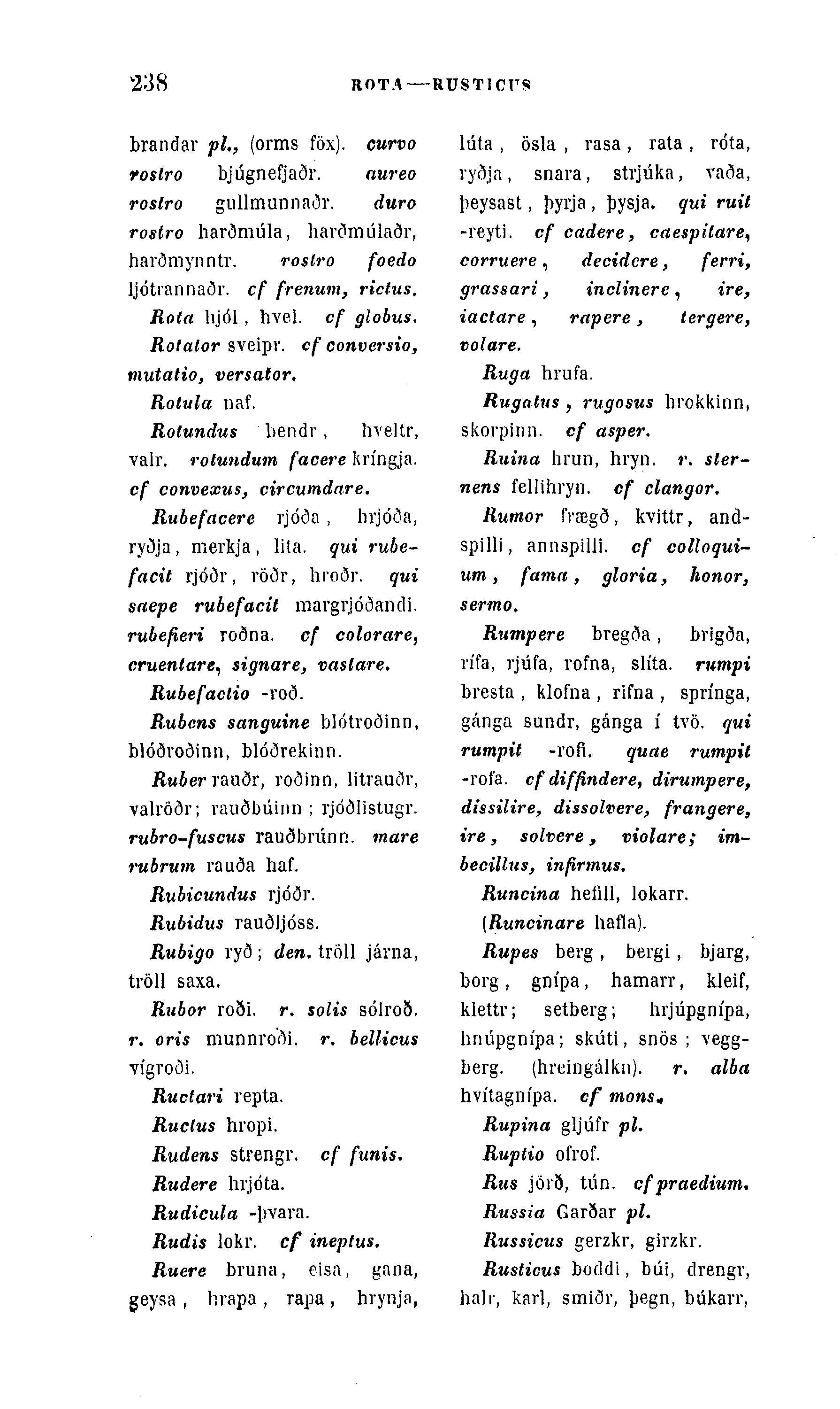 Rubefacere rjóða , hrjóða, ryðja, merkja , lila. qui rube-facit rjóðr, röðr, hroðr. qui snepe rubefacit margrjóðandi. rubefieri roðna. cf colorare, cruentare, signare, vastare.