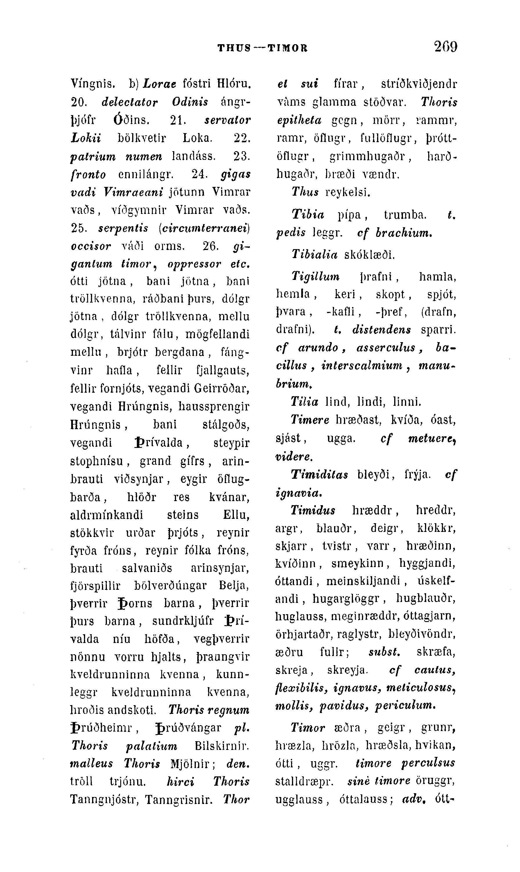 VÃngnis. b) Lorae fóstri Hlóru. 20. delectator Odinis ángr-þjófr Óðins. 21. servalor Lokii bölkvetir Loka. 22. patrium numen landáss. 23. fronto ennilángr. 24. gigas vadi Vimraeani jötunn Vimrar vaðs, vÃðgymnir Vimrar vaðs. 25. serpentis (circumterranei) occisor váði orms. 26. gi~ ganlum timor, oppressor etc. ótti jötna, bani jötna, bani tröllkvenna, ráðbani þuvs, dólgr jötna , dólgr tröllkvenna, mellu dólgr, tálvinr fálu, mögfellandi mellu , brjótr bergdana , fáng-vinr hafla, fellir fjallgauts, fellir fornjóts, vegandi Geirröðar, vegandi Hrúngnis, haussprengir Hrúngnis, bani stálgoðs, vegandi J?rÃvalda, steypir stophnÃsu , grand gÃfrs , arin-brauti viðsynjar, eygir öflug-barða, hlöðr res kvánar, aldrmÃnkandi steins Ellu, stökkvir urðar þrjóts, reynir fyröa fróns, reynir fólka fróns, brauti salvaniðs arinsynjar, fjörspillir bölverðúngar Belja, þverrir f>orns barna, þverrir þurs barna, sundrkljúfr jþrÃ-valda nÃu höfða, vegþverrir nönnu vorru hjalts, þraungvir kveldrunninna kvenna , kunn-leggr kveldrunninna kvenna, hroðis andskoti. Thoris regnum Jjrúðheimr, jjrúðvángar pl. Thoris palatium Bilskirnir. malleus Thoris Mjölnir; den. tröll trjónu. hirci Thoris Tanngnjóstr, Tanngvisnir. Thor