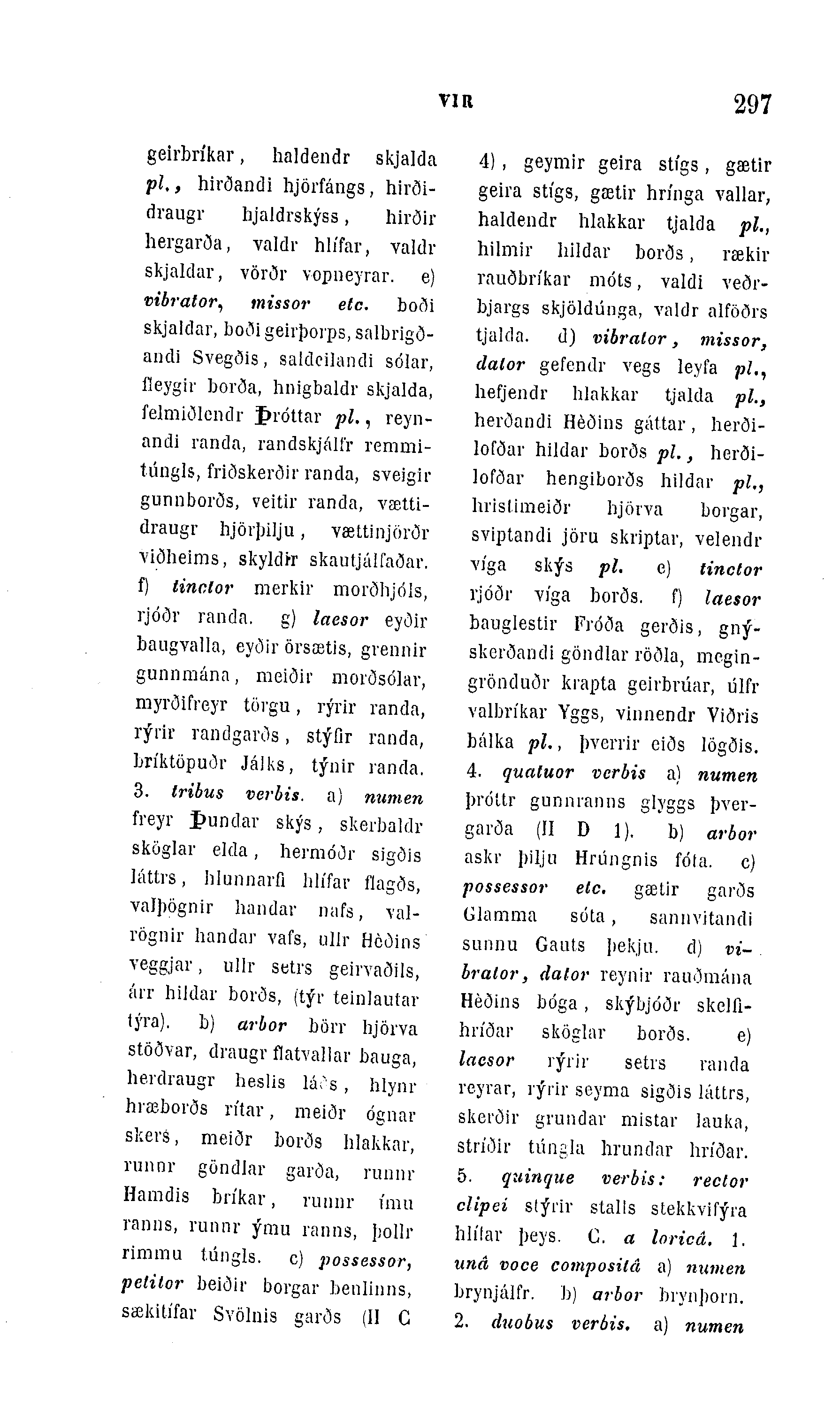 5.     quinque verbis: reclor clipei síýrir stalls stekkvifýra hlílar þeys. C. a loricá, 1. nná voce composilá a) ntwien brynjálfr. b) arbor brynþorn. 2. duobus verbis, a) numen