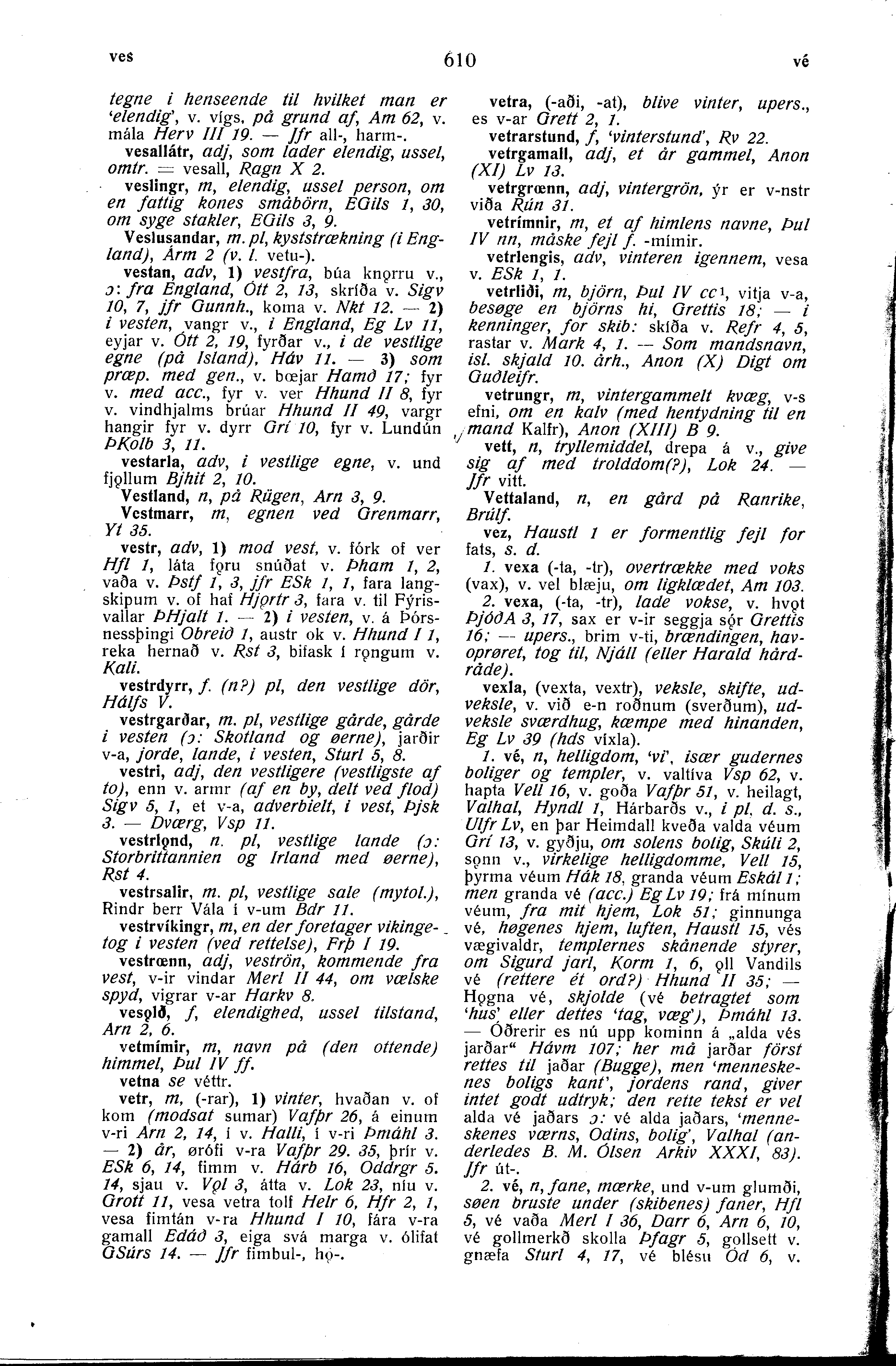 véttr, vétr - við, viðr