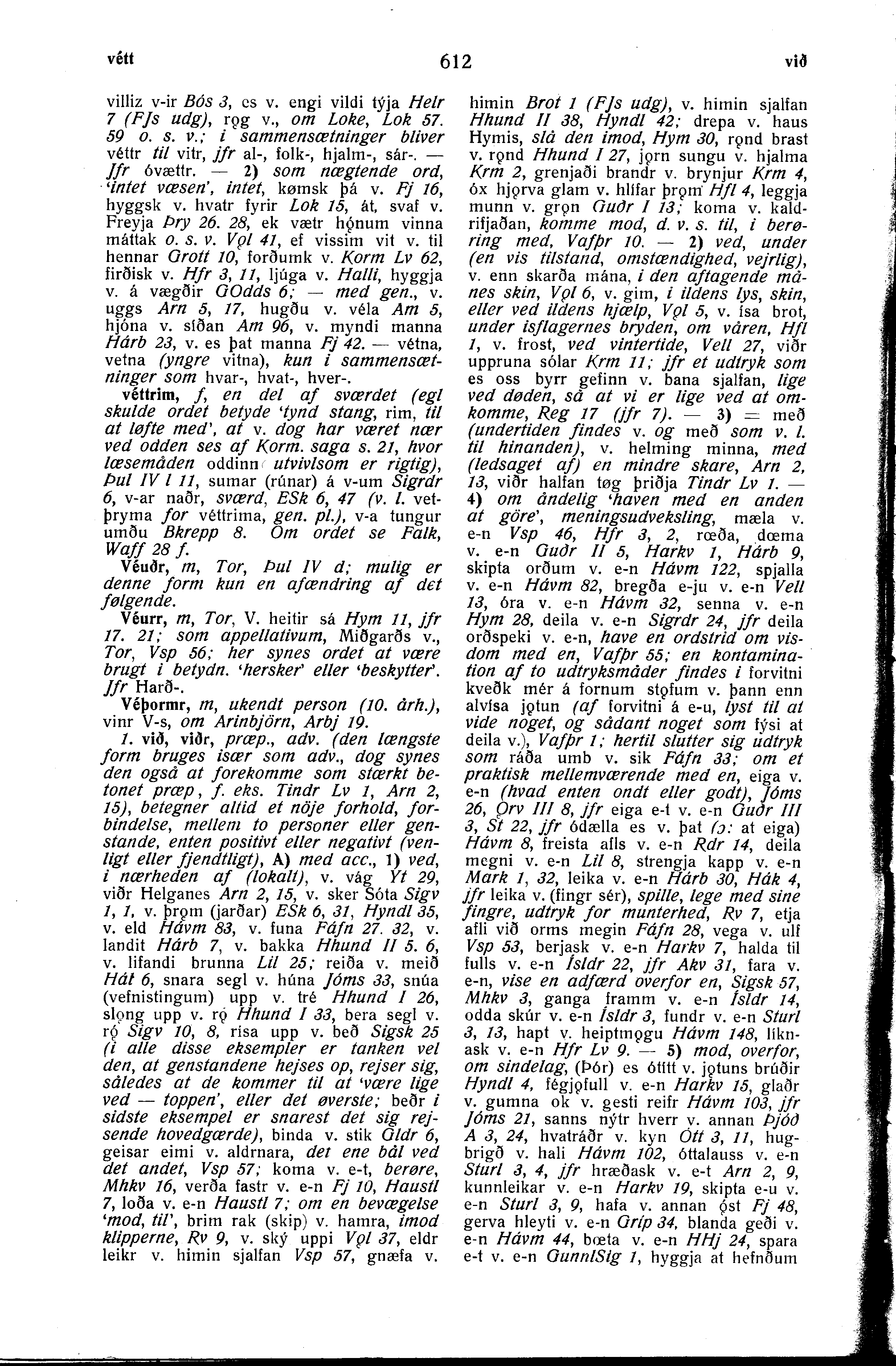 p. 612 véttr, vétr - við, viðr; download this page: [